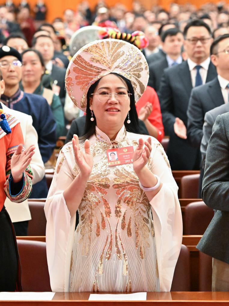 3月4日,苏海珍委员在全国政协十四届四次会议开幕会上。