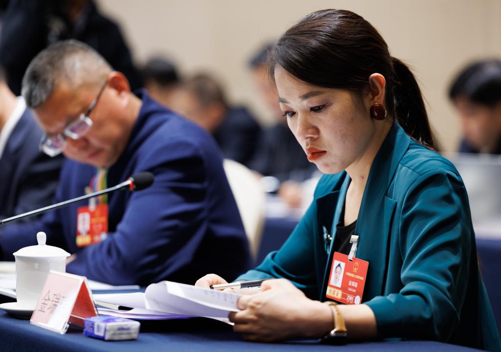 3月6日,金瑞瑞代表在驻地参加分组审议。