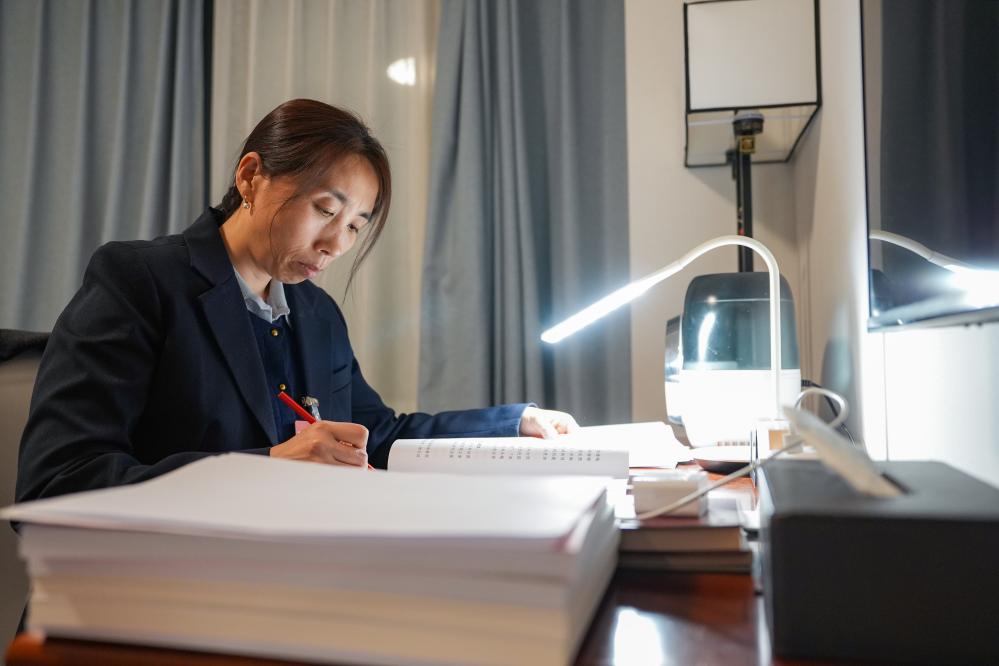 3月6日,郭红静代表在天津代表团驻地阅读政府工作报告。