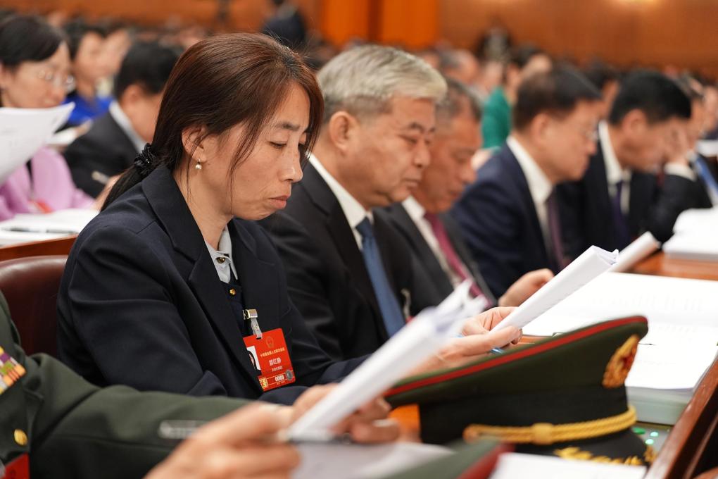 3月5日,郭红静代表在十四届全国人大四次会议开幕会上听会。