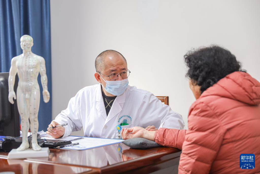 3月16日,在青岛市李沧区李村街道社区卫生服务中心国医馆,医生为患者看病。