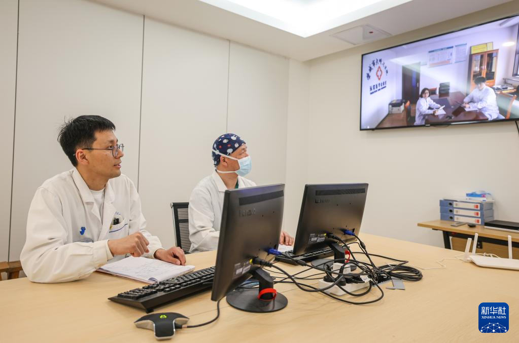 3月16日,在荣成市人民医院远程会诊中心,胸心外科、麻醉科专家和乡镇卫生院医护人员联合开展远程会诊。
