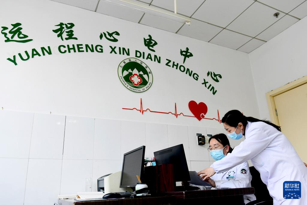 3月15日,在日照市五莲县人民医院远程心电中心,医师通过乡镇卫生院传来的心电图进行诊断。