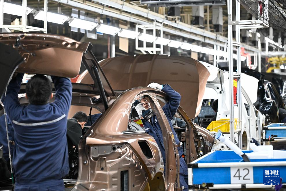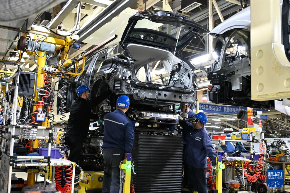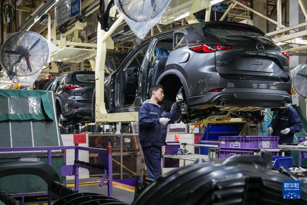 3月17日,在位于南京市江宁开发区的长安马自达汽车有限公司总装车间内,工人在生产线上进行生产作业。