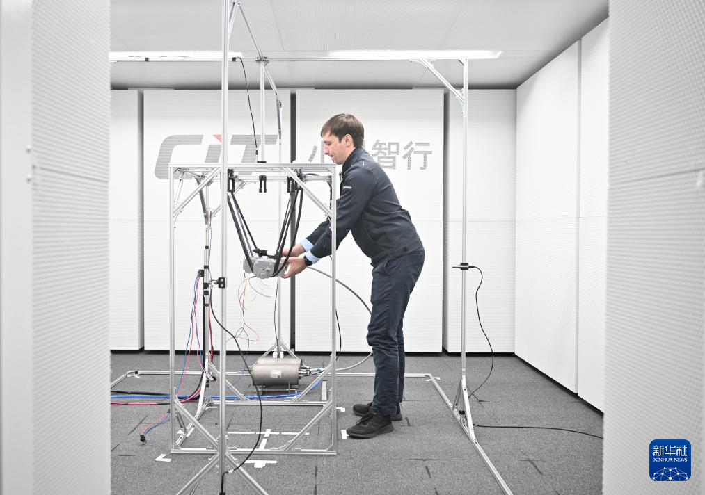 2月25日,在小科智行(太仓)汽车科技有限公司的半消音实验室,企业负责人准备对新能源汽车中央气源系统进行噪声测试。