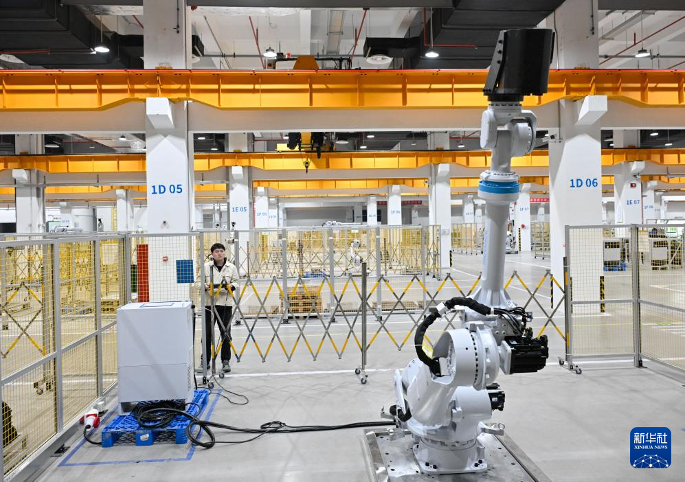3月17日,在位于南京市江宁开发区的汇川技术南京基地自动化车间内,多关节机器人产线在进行出厂前测试。