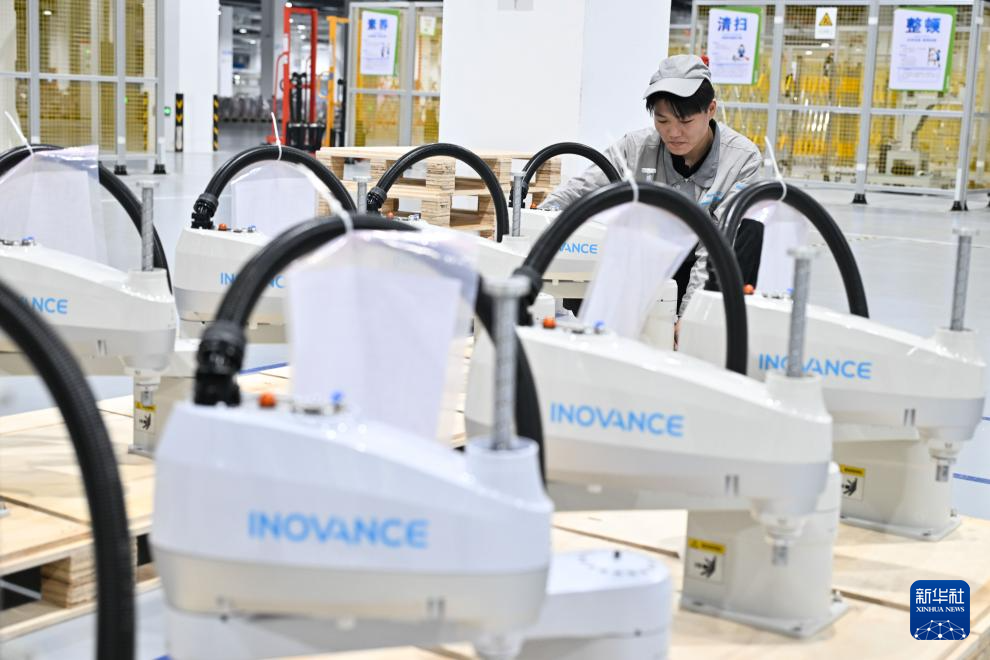 3月17日在位于南京市江宁开发区的汇川技术南京基地生产车间拍摄的机器人产品。