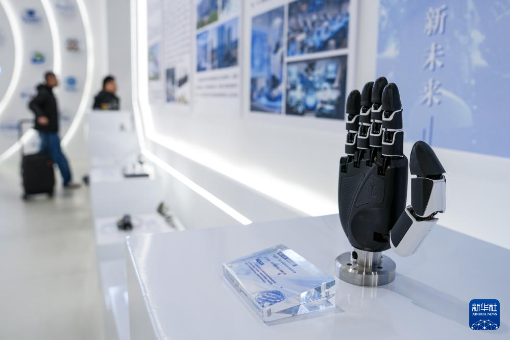 这是苏州市具身智能机器人综合创新中心内展示的“仿生五指灵巧手”(3月10日摄)。