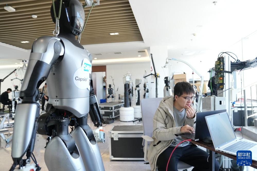 在苏州市具身智能机器人综合创新中心,工作人员在展示机器人多场景应用(3月10日摄)。