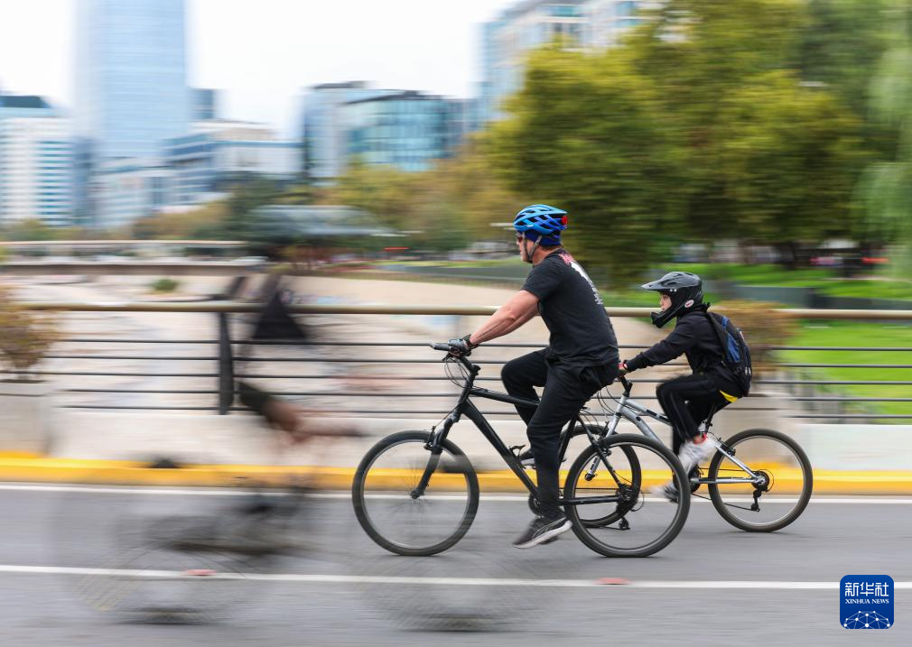 为推广绿色出行和健康生活理念,智利首都圣地亚哥市区的多条街道在每周日9时至14时对机动车封闭,方便人们进行骑行、跑步等活动。