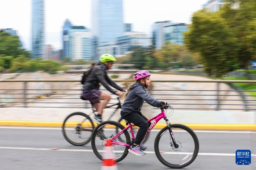 为推广绿色出行和健康生活理念,智利首都圣地亚哥市区的多条街道在每周日9时至14时对机动车封闭,方便人们进行骑行、跑步等活动。