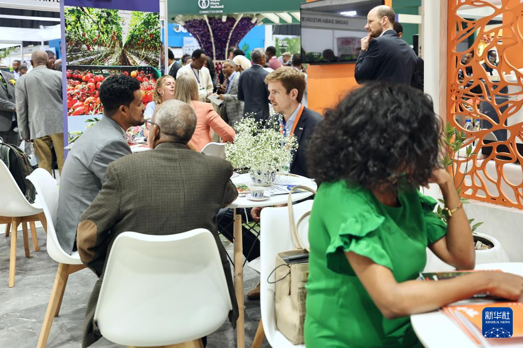 3月24日,人们在埃塞俄比亚首都亚的斯亚贝巴举行的花卉与园艺贸易博览会上交流。