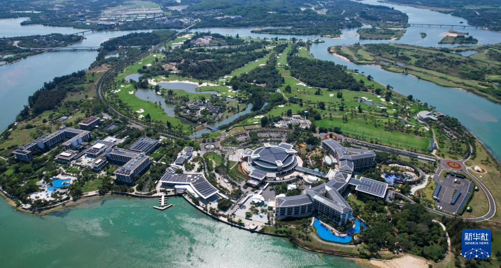 俯瞰博鳌零碳示范区所在地海南省琼海市博鳌镇东屿岛(3月19日摄,无人机照片)。