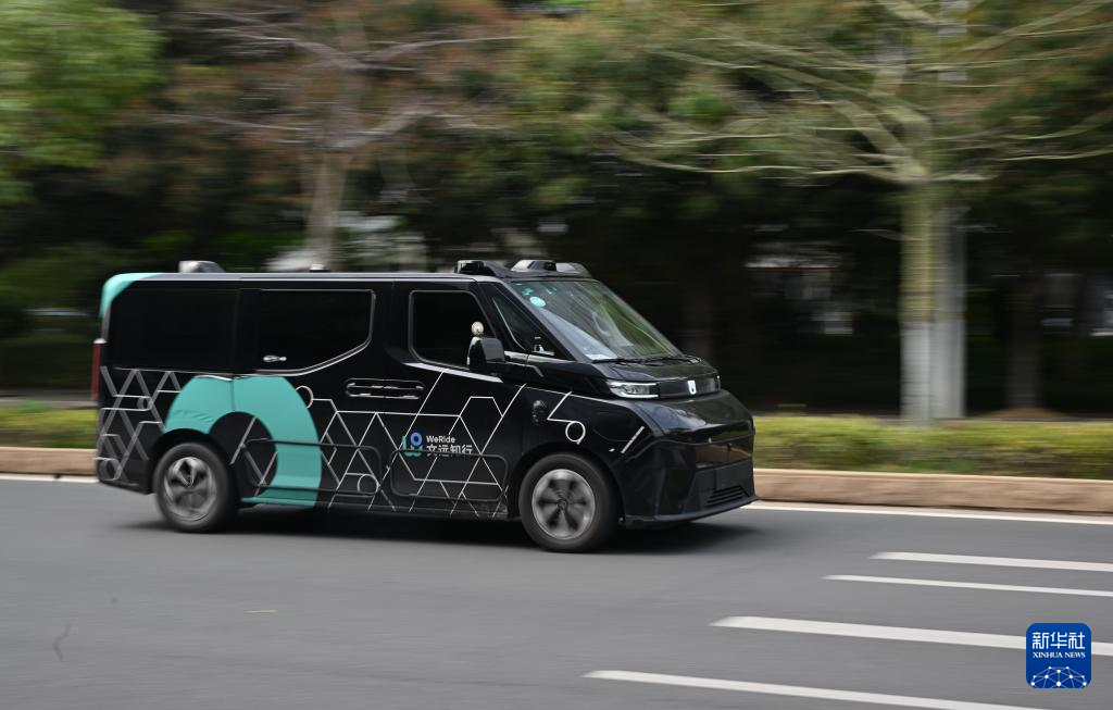 3月24日,在广州市海珠区螺旋大道拍摄的文远知行自动驾驶出租车。