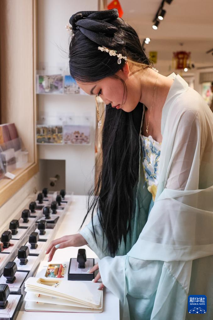 3月23日,游客在北京玉渊潭公园内的一家文创店选购文创产品。