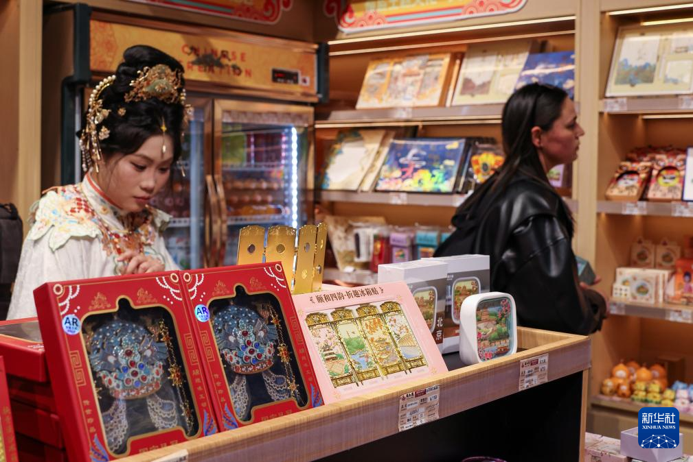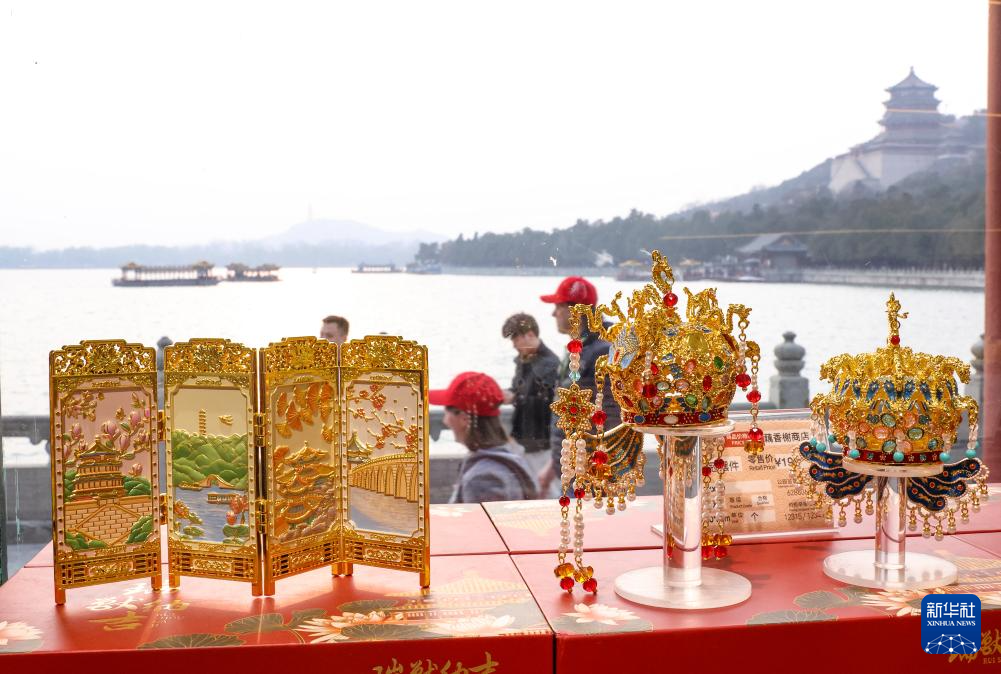 3月23日,游客走过颐和园的文创商品店。