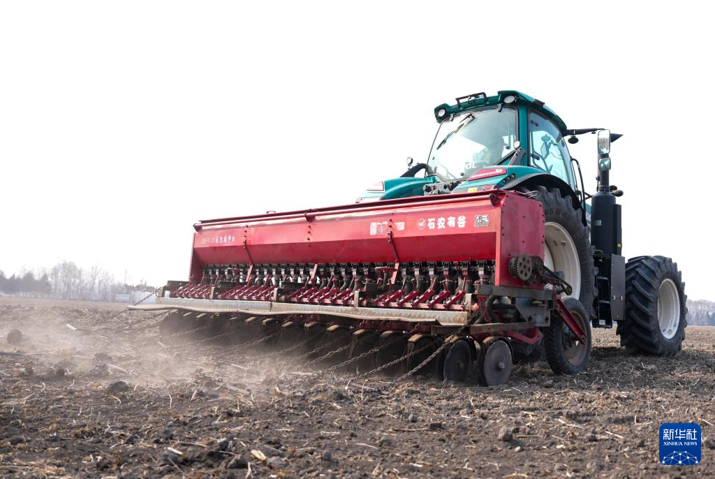 3月25日,播种机在位于黑龙江省哈尔滨市的北大荒集团闫家岗农场有限公司一处耕地上根据设定程序播种小麦。