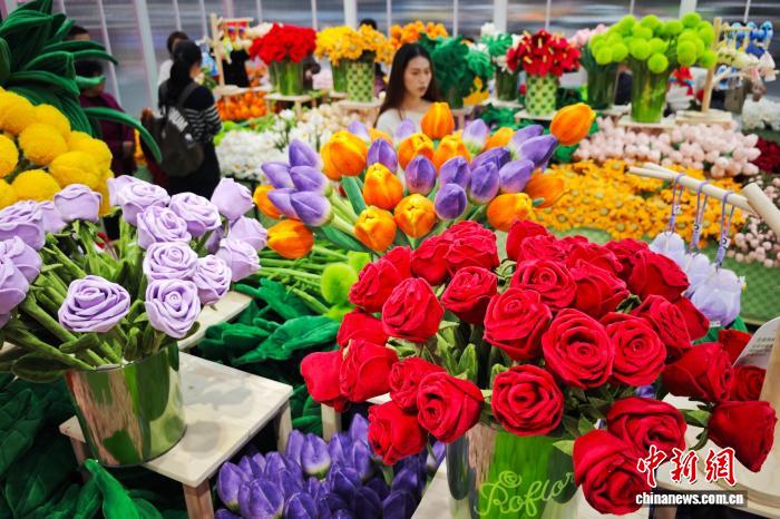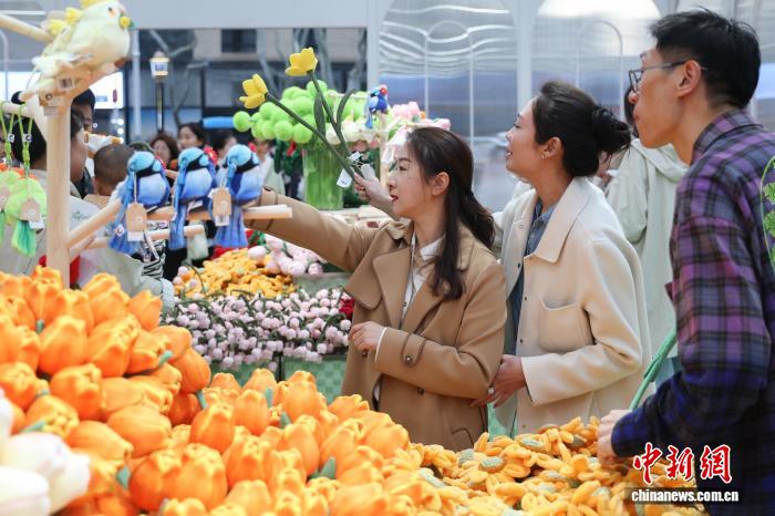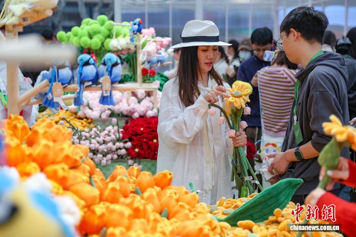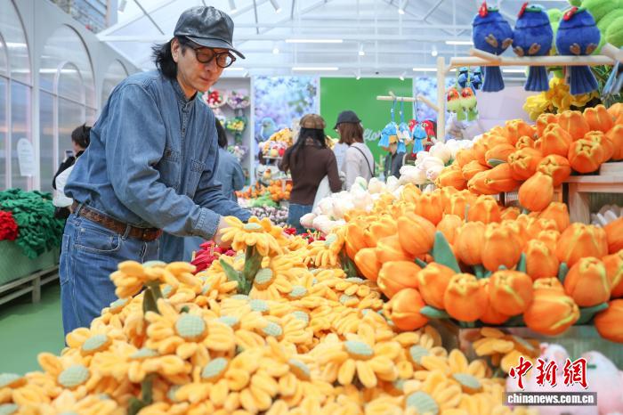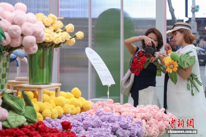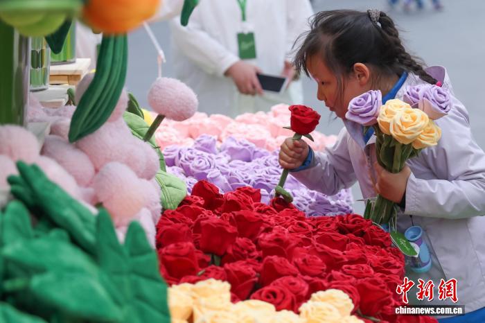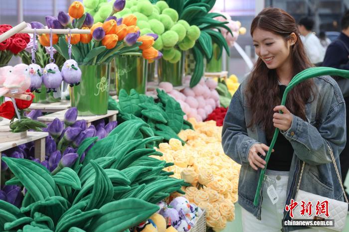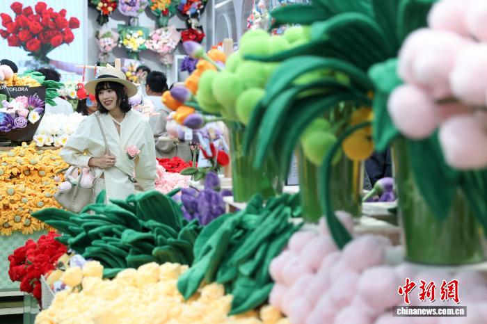 3月28日,江苏南京,德基艺术博物馆Roflora艺术花境快闪活动在德基广场户外举办,依托该馆“花花世界”花卉主题艺术典藏及相关植物学研究,40余种毛绒花卉系列将艺术元素与植物结构相结合,兼具鲜花的细腻与画作的艳丽,给市民和游客带来春日独特的文旅体验。中新社记者 泱波 摄