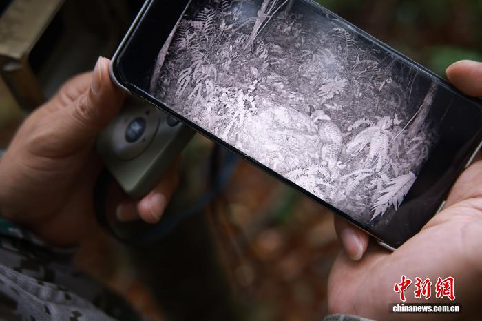 3月29日,工作人员查看红外触发相机拍摄到的中华穿山甲活动影像。中新社记者 孙杨洋 摄