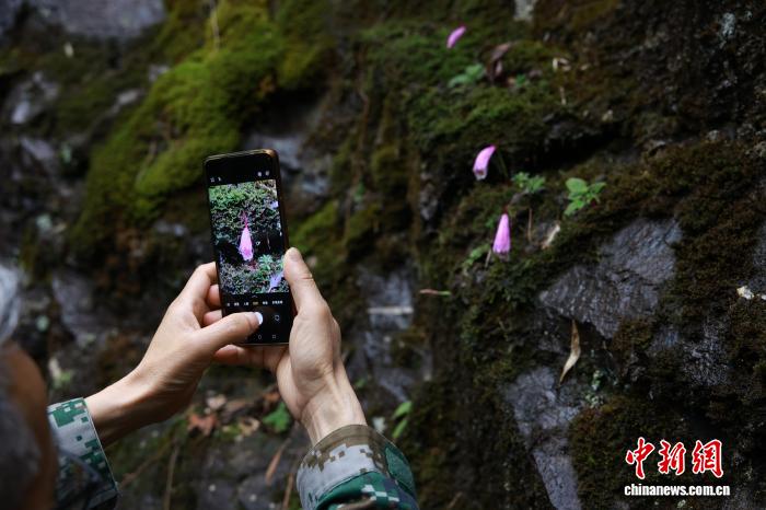 3月29日,工作人员记录台湾独蒜兰生长状态。中新社记者 孙杨洋 摄