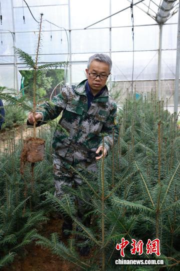 3月29日,完成野外回归种植的百山祖冷杉树苗。中新社记者 孙杨洋 摄