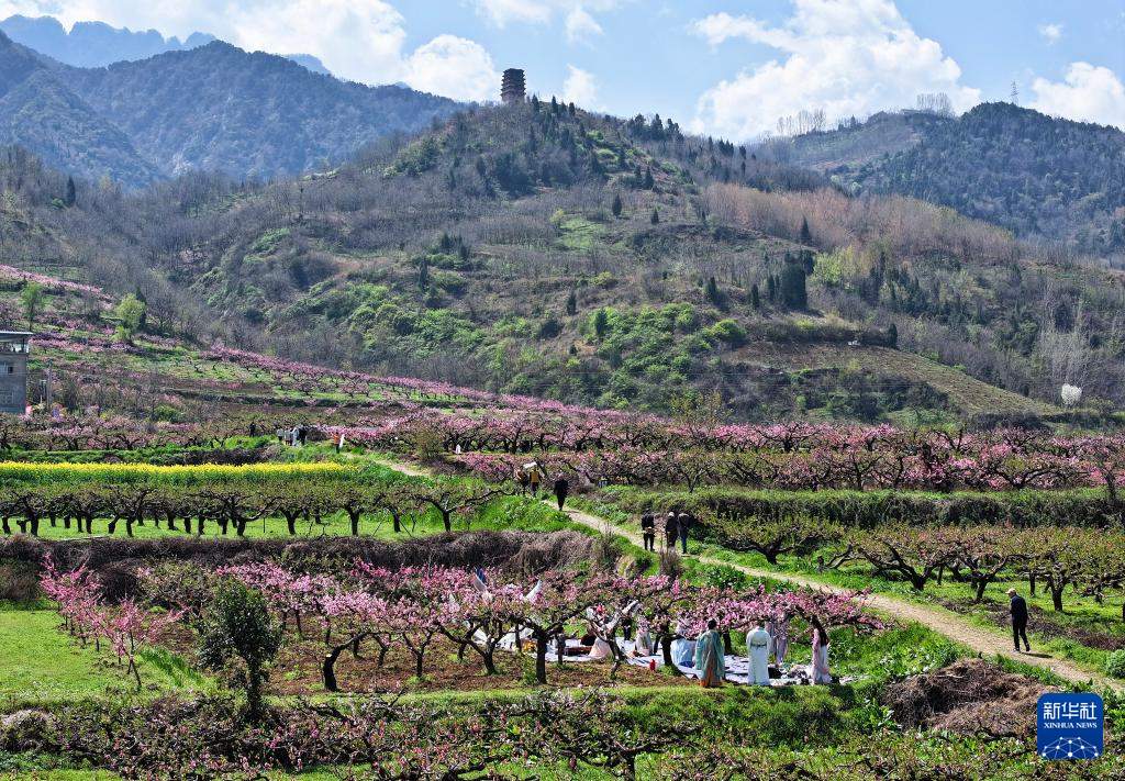眼下,位于秦岭终南山脚下的西安市长安区王莽街道6800余亩桃花盛开,当地举办桃花诗歌会等文旅活动,吸引众多游人踏春赏花。
