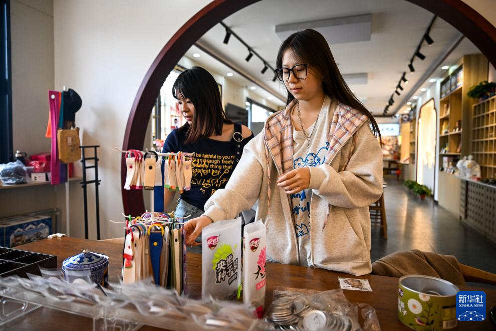 3月30日,游客在位于画匠营子村的“天下黄河第一村”景区选购文创产品。