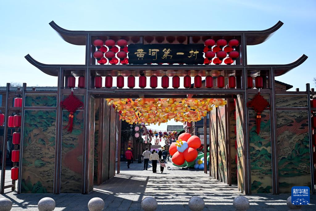 3月30日,游客在位于画匠营子村的“天下黄河第一村”景区游览。