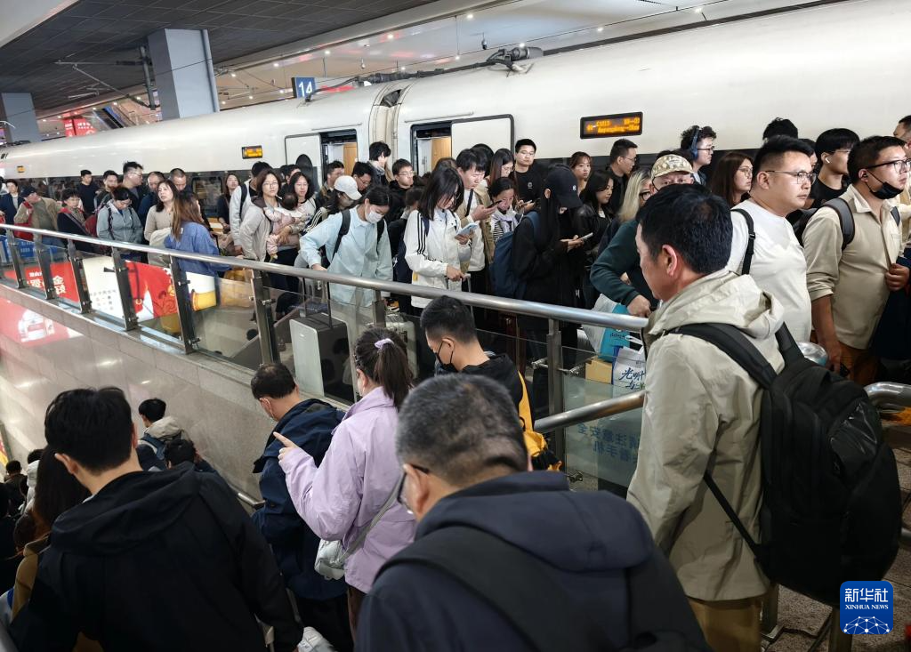 4月6日,在广州南站站台,旅客有序下车出站。