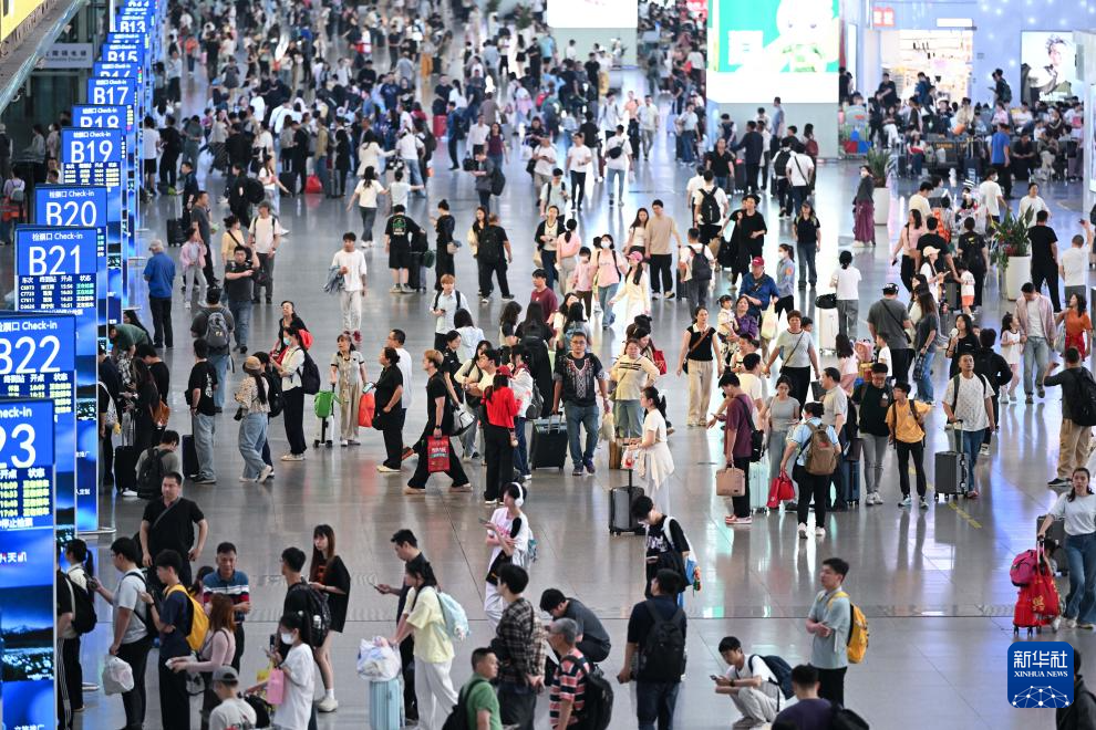 4月6日,旅客在广州南站候车大厅等待检票。