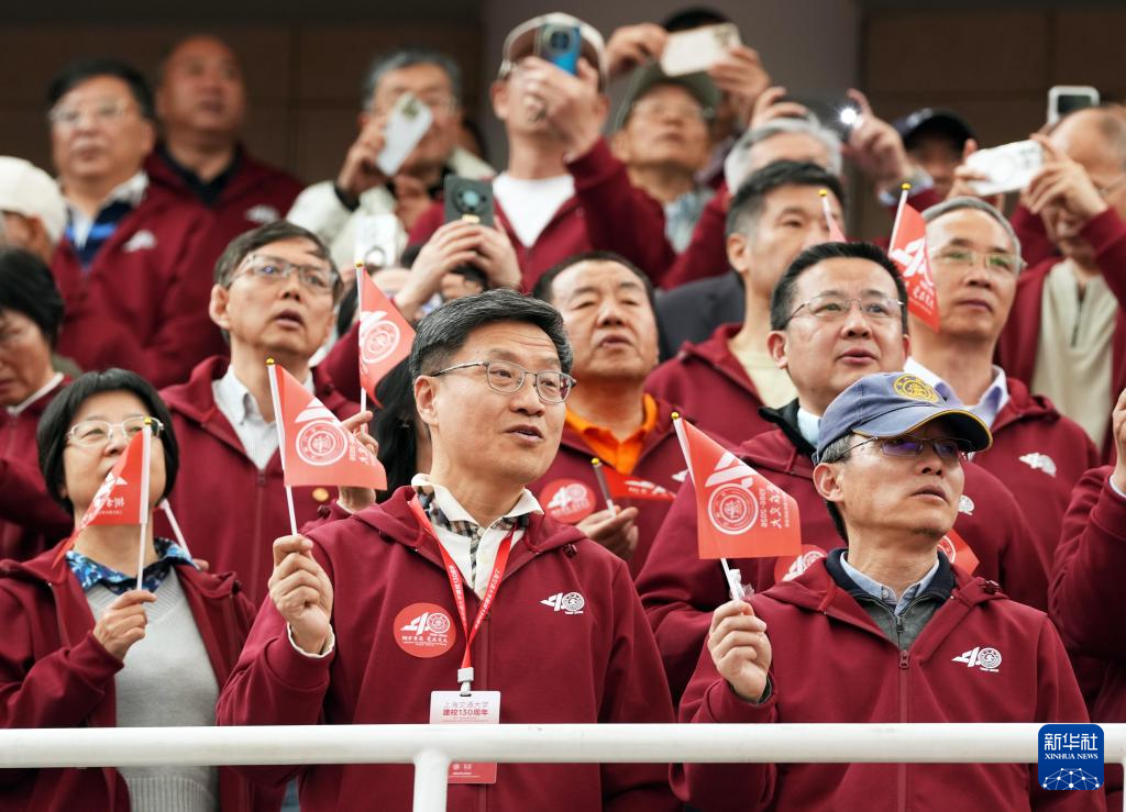 4月8日,参加大会的校友合唱校歌。