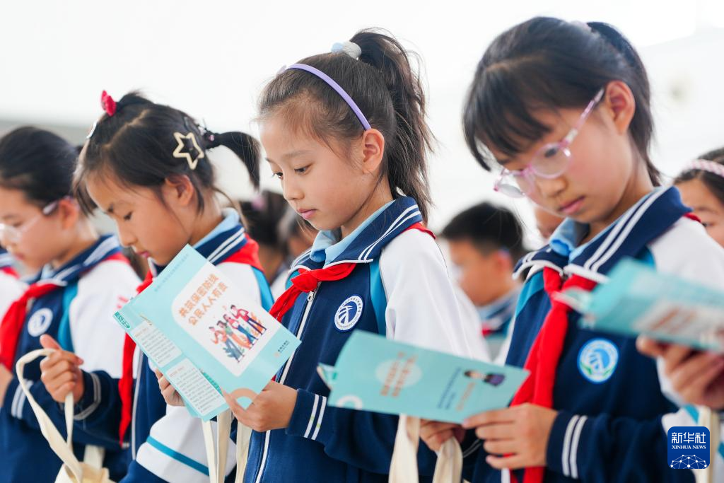 4月13日,在济南国际机场,学生在活动现场学习国家安全知识。