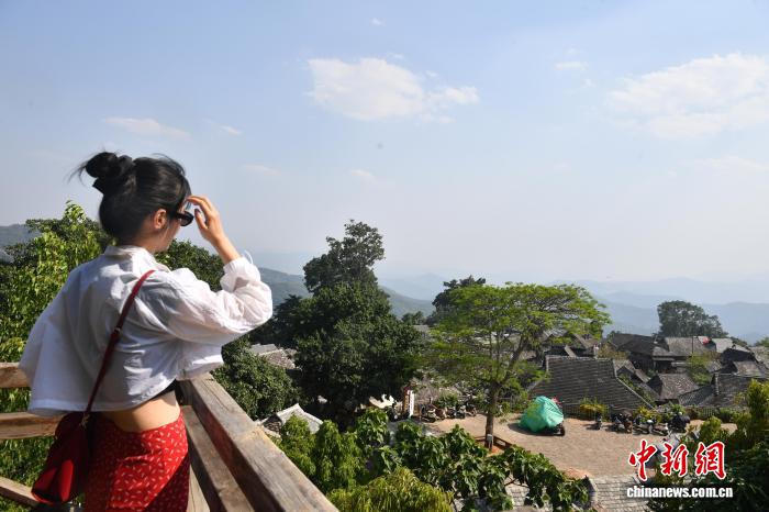 4月14日,一名游客在景迈山翁基古寨赏景。近日,地处中缅边境云南省普洱市澜沧拉祜族自治县的景迈山千年万亩古茶园进入采收季,吸引游人前来买茶、观光。2023年9月17日,“普洱景迈山古茶林文化景观”成为全球首个茶主题世界文化遗产。中新社记者 黄兴鸿 摄