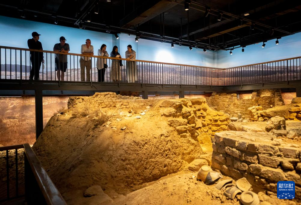 4月17日,中美“乒乓外交”亲历者朱迪·霍夫罗斯特(右三)在宁夏银川西夏陵博物馆参观。