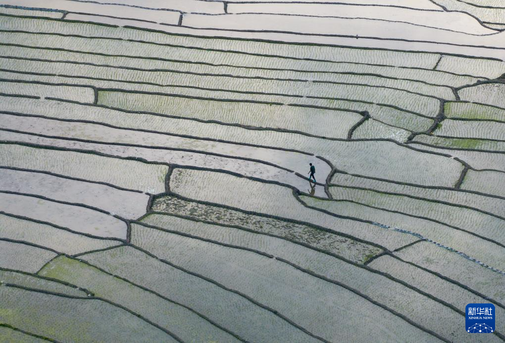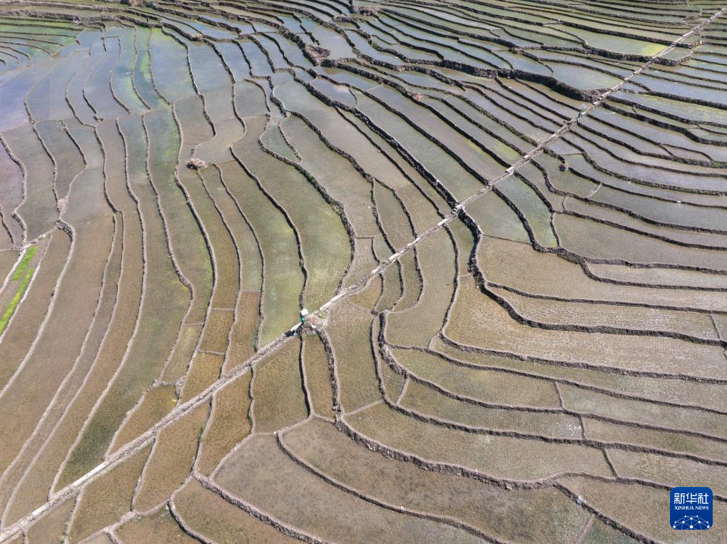 4月18日拍摄的普昌梯田一角(无人机照片)。
