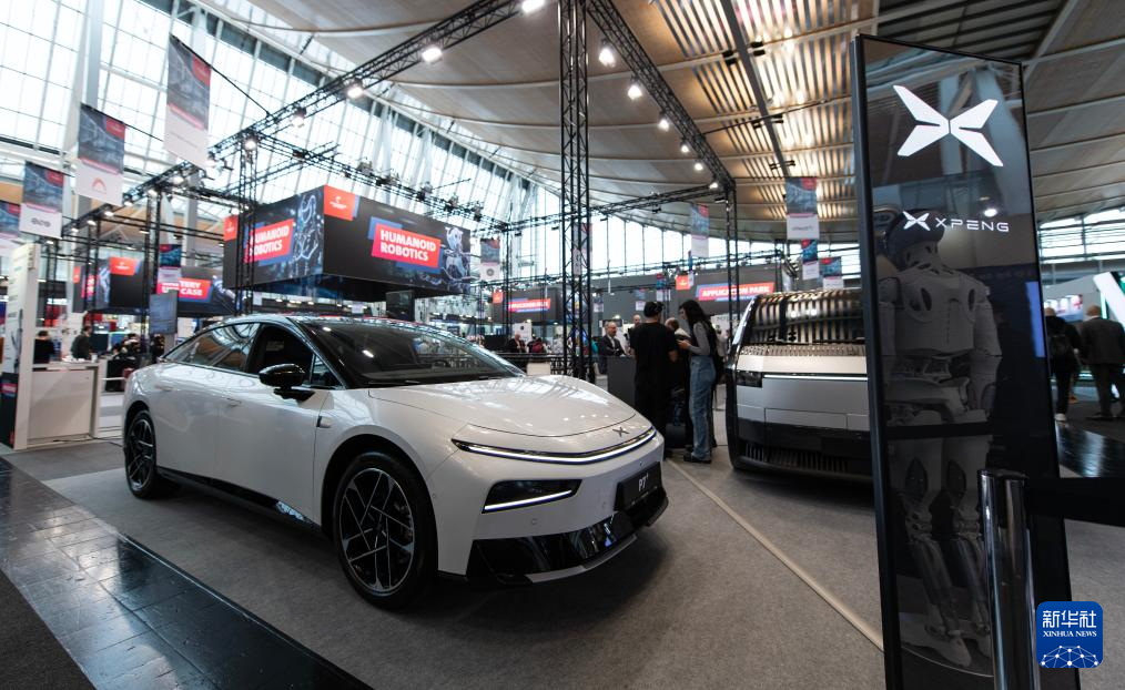 这是4月20日拍摄的德国汉诺威工业博览会小鹏汽车展区。