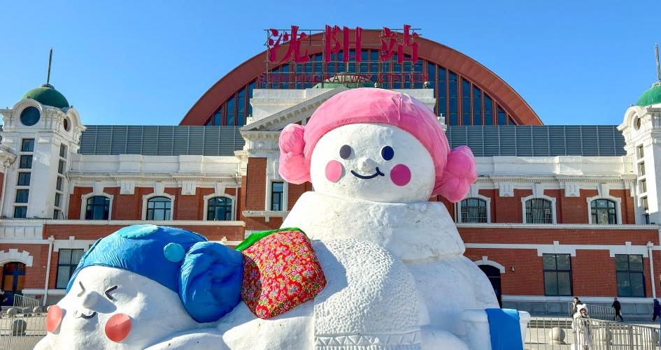 沈阳:可爱雪人迎游客