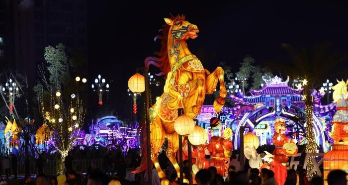 (新春见闻)千盏花灯点亮水乡夜色 杭州西溪灯会令人流连