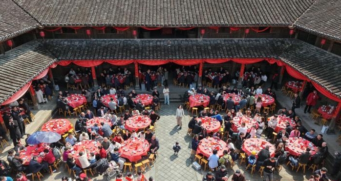 (新春走基层)浙江温州:泰顺三魁百家宴开席 万人欢聚庆元宵