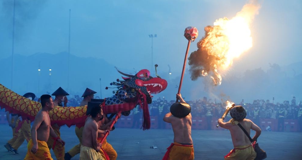广西宾阳:舞炮龙 庆新春