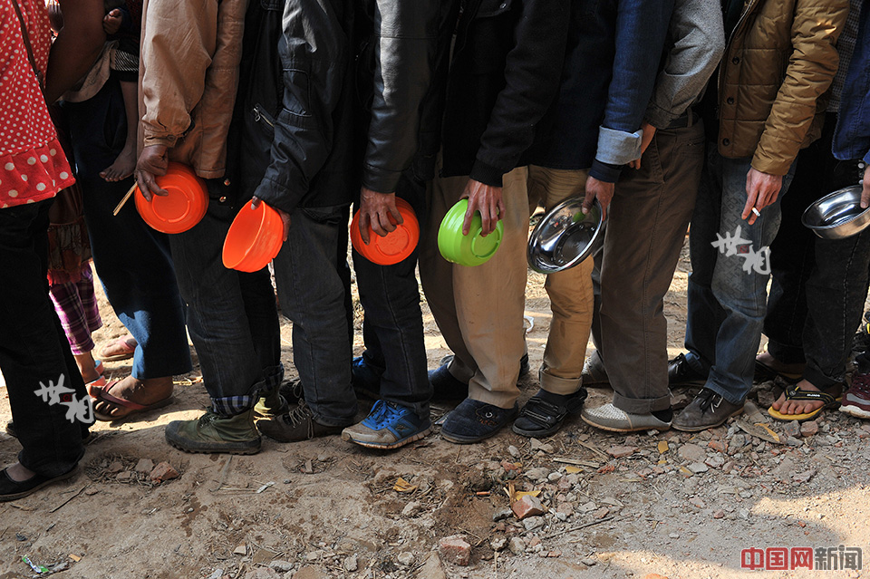 果敢125难民营,难民们自觉排队用午餐。