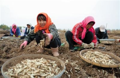 近日,青铜峡市大坝镇中滩村村民李秀琴(左)和雇工们收获乡螺菜。据了解,乡螺菜俗名“地溜子”,目前在青铜峡市大坝镇、陈袁滩镇和小坝镇种植面积达3000亩左右,成为不少农民增收致富的“金螺丝”。记者计鹏摄