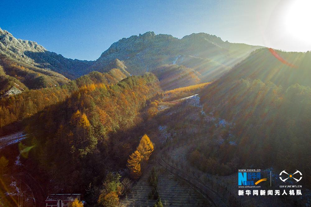 立冬之夜,湖北省神农架林区迎来了第一场初雪。雪过天晴,高山白雪皑皑,低山红叶正浓,秋与冬自然过渡,蓝天、白雪、秋色遥相辉映,神农架初雪秋色五彩斑斓,美不胜收。新华网发 陈金武 摄