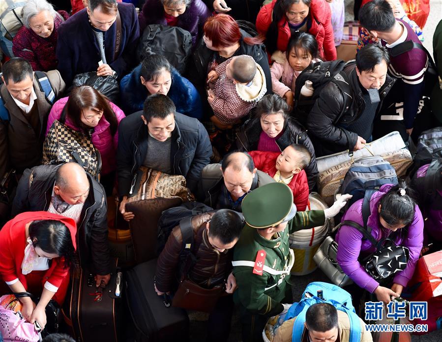 1月13日,K4186次外来务工人员专列乘客由福州站检票进站。 1月13日下午1时58分,福建首趟外来务工人员专列K4186次列车由福州开往四川广安,2591名外来务工者开始了返乡旅程。这趟列车途经福建、江西、湖北、陕西、四川5省11站,全程2084公里,历时27小时35分钟。新华社记者随车全程感受了外来务工人员返乡的艰辛与温暖,乘务人员的坚守与付出。新华社记者姜克红 摄
