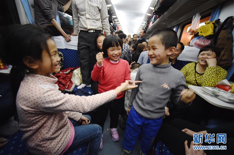 1月13日晚,K4186次外来务工人员专列内,小乘客在玩游戏。 1月13日下午1时58分,福建首趟外来务工人员专列K4186次列车由福州开往四川广安,2591名外来务工者开始了返乡旅程。这趟列车途经福建、江西、湖北、陕西、四川5省11站,全程2084公里,历时27小时35分钟。新华社记者随车全程感受了外来务工人员返乡的艰辛与温暖,乘务人员的坚守与付出。新华社记者姜克红 摄