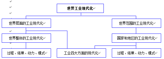 根据系统论的观点,整体不等于局部之和。前面关于工业现代化的时序分析和截面分析,揭示了世界工业4大方面现代化的大量事实。但是,它们尚不能构成工业现代化的完整概念。全面和系统地认识工业现代化,不仅要有工业四大方面的现代化研究,还要有工业现代化的整体研究,包括世界整体的工业现代化、国家和地区的工业现代化研究(图1)等。