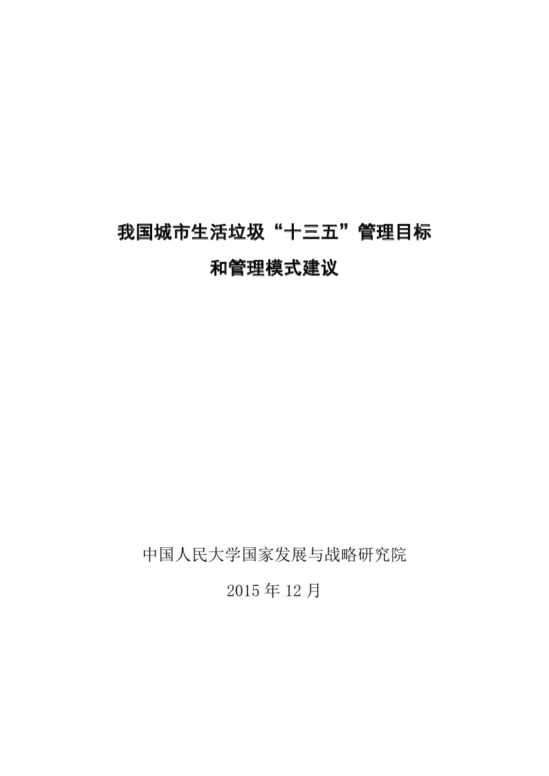 中国人民大学国家发展与战略研究院宋国君教授带领研究团队,经过长期研究,对“十二五”时期生活垃圾管理规划及管理状况进行了评估,发布了《我国城市生活垃圾管理“十三五”目标和管理模式建议》报告。报告提出“十三五”时期生活垃圾管理的目标和管理模式建议,希望以明确的目标和可行的政策建议,促进政府开展生活垃圾源头分类、其它垃圾减量、资源回收和降低垃圾处理成本,并通过信息公开,实现全社会对生活垃圾管理的重视和监督。