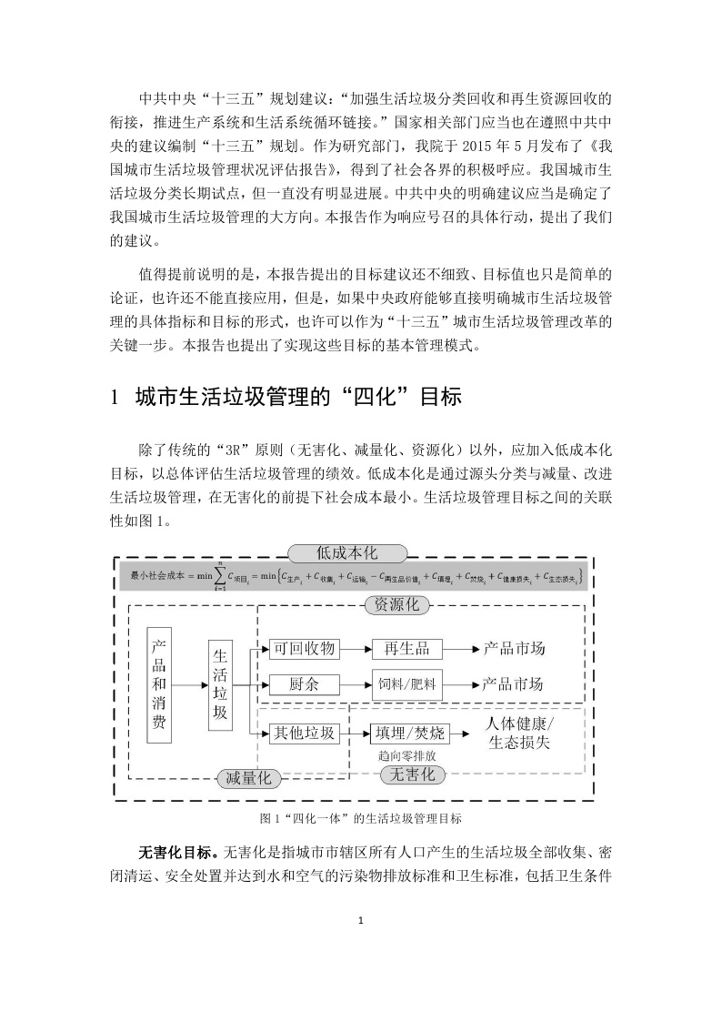 城市生活垃圾管理"十三五"目标和管理模式建议/全文