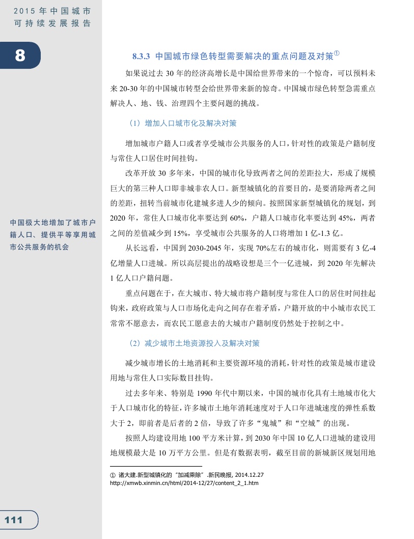 2015年中国城市可持续发展报告(全文)
