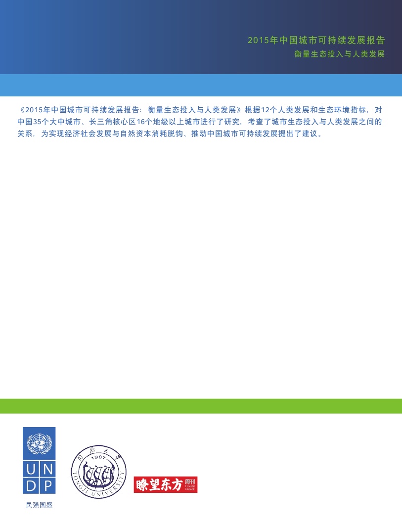 2015年 中国城市 可持续发展 报告 UNDP